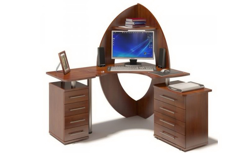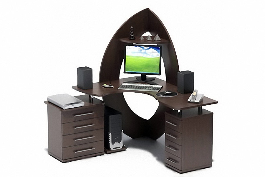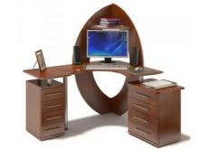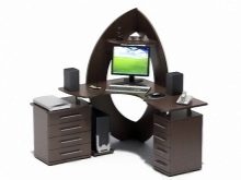 - "Falcon". The sides are 98 cm long, the model has a great depth. Its structure is the same from both edges, there are cabinets with retractable drawers, a compartment for the system unit and symmetrically located superstructure. The table is shaped as a sector of a circle. Cost - 7300 rubles.