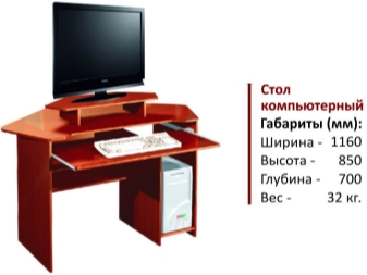 - "КСТ 101" from the factory "Sokol", has a small functionality, but an interesting design. This model has no compartments at the bottom, and the form has a non-standard solution. The superstructure looks like an elongated oval, into which the upper shelf enters and borders the monitor. Location can be in one direction or in several directions at the same time. The price of such an unusual table is 9300 rubles.