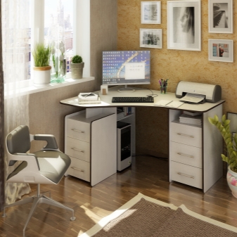Given the complexity of the organization, you can purchase a corner table for a computer for a small amount of money. Of course, the more complex the design, the more the price increases. Many of the models are made of chipboard, and its value as the starting material is small.