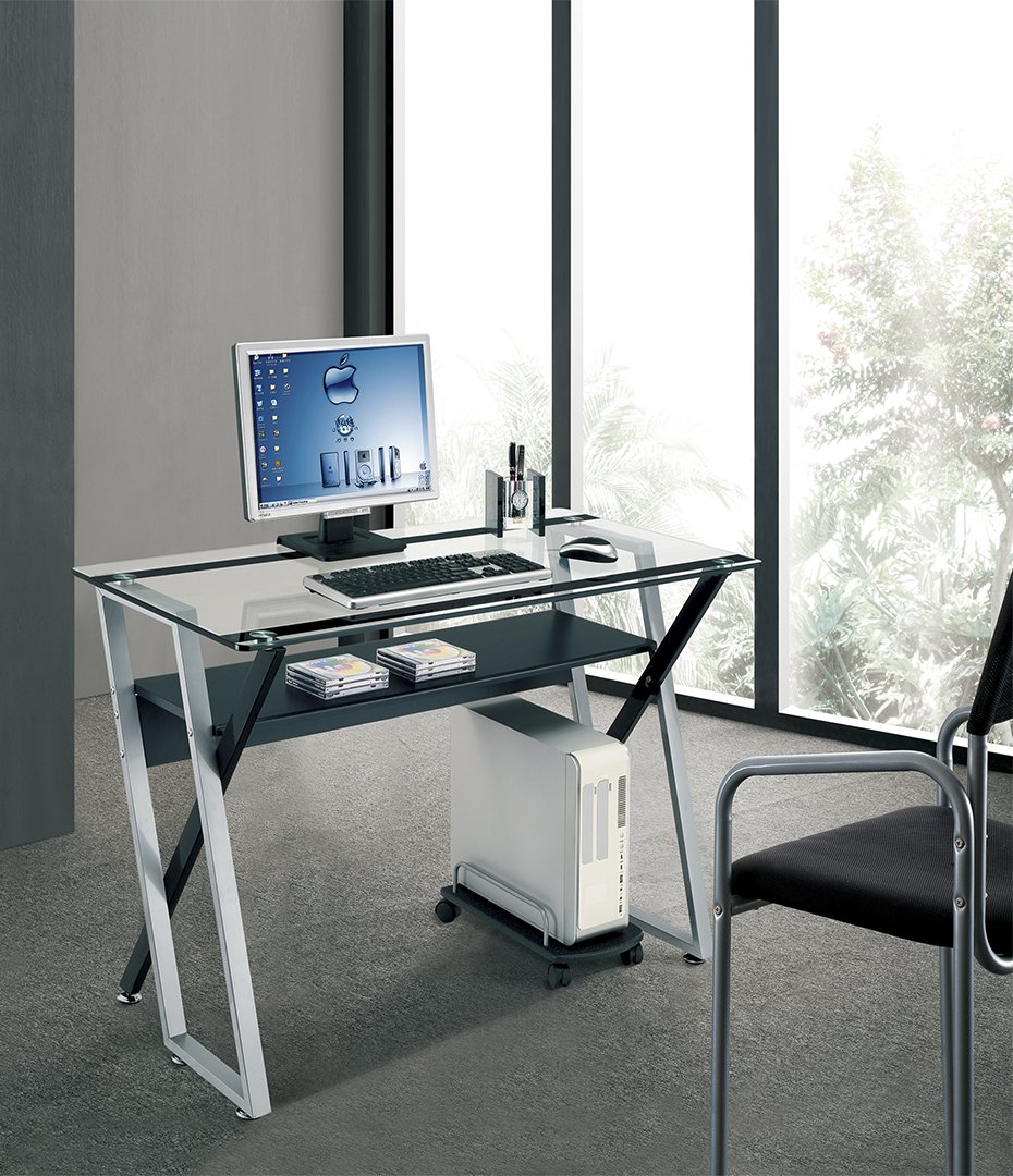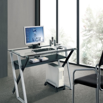- Metal tables for the computer represent an iron frame and a glass or wooden surface of the table. They are stronger and serve much longer than wood, but often do not harmonize with the interior of the apartment. Therefore, I use them more often in offices. Typically, the raw material is aluminum or stainless steel.