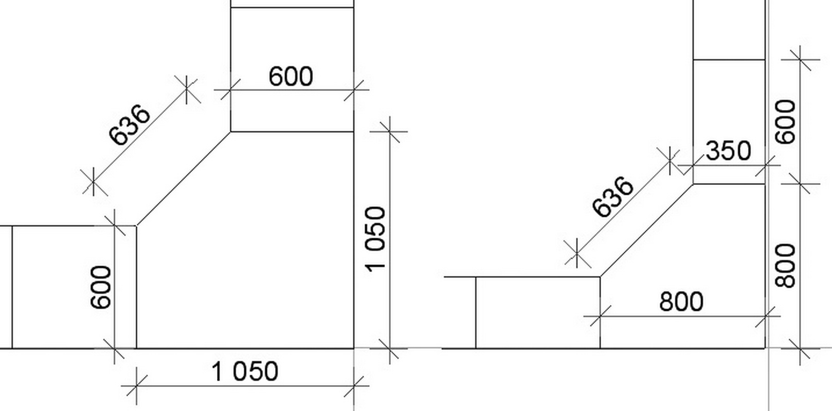 - Diagonal. In these models there is a very limited construction and therefore the boxes are rarely installed because of their bulkiness. In most cases, the bottom are simply open shelves.