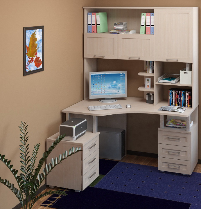 - If in the future organizational equipment will be bought in addition, then it is necessary to have separate shelves to conveniently place it. Be sure to have a compartment for the system unit.