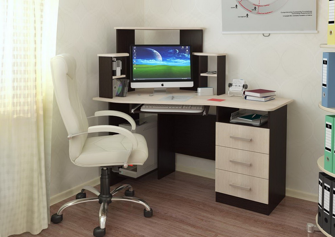 A computer desk, like any furniture, is selected individually for the needs of each person. The main criterion is convenience and comfort while working at the table. The second most important criterion is sufficient area, taking into account additional organizational equipment, various items and everything that is supposed to be placed on it.