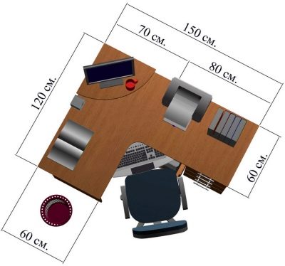 Therefore, the tabletop plays a major role, namely its depth. In the course of work, a computer monitor should fit on it and there should be a place to work at a table with various papers and documents.