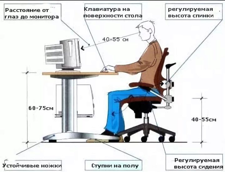 Incorrectly selected height of the desktop can cause visual impairment and curvature of the spine. In addition, during work a person gets tired faster and feels discomfort. The height of the table affects the position in which the person will sit, working behind him. A very low table makes you lean back and lean forward a little, and a high one, in turn, forces you to keep your head elevated.