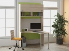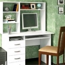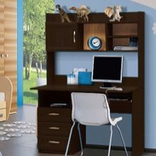 The superstructure is an additional piece of furniture, which is presented in the form of an open shelf, cabinet, bedside tables, but is not a separate unit, but rather is provided for by the structure. Table with add-ons very convenient for both schoolchildren and for the user of more advanced age. Add-ins are able to accommodate all the necessary attributes, and in some cases it may even remain a place for items that do not belong to the main occupation.