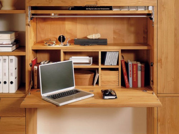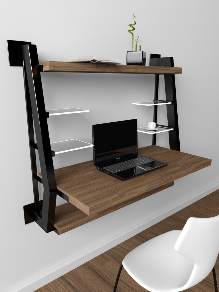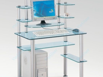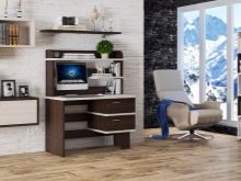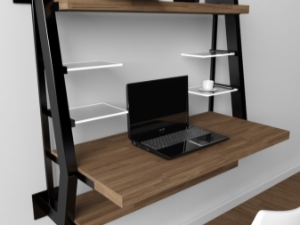 There are also folding tables, tables with a double secret drawer in the tabletop, where you can remove the laptop. For lovers of minimalism, there are lightweight options that do not have deaf cabinets and cabinets, and the design resembles a step ladder, which has shelves and a tabletop for a monitor and a letter instead of steps.