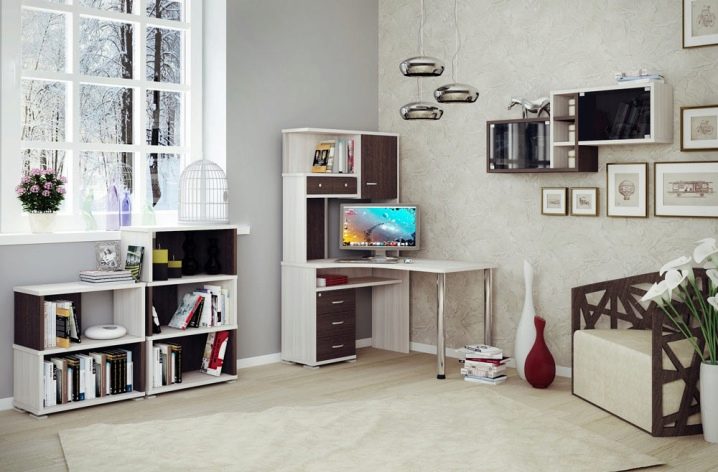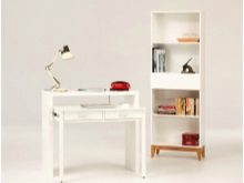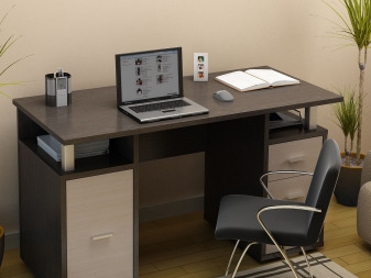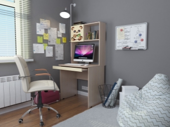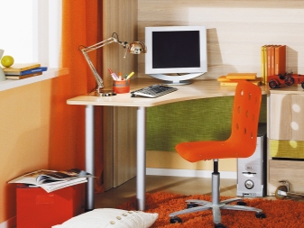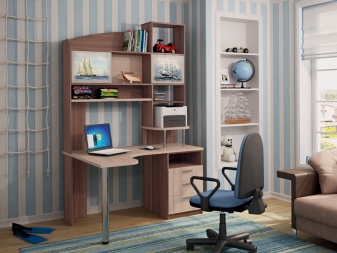 To save space, select options with add-ons that will be above or below the table top. Variants with a pencil case and high racks from the floor are more bulky, they assume more space for storage. A good option would be a corner table. Such a table can be either symmetrical or have one side of the tabletop longer than the other.