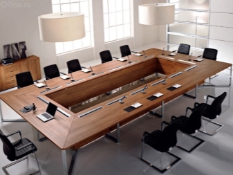 The advantage of such a table is the opportunity to place it in the center of the room, as we used to see in the director's office.