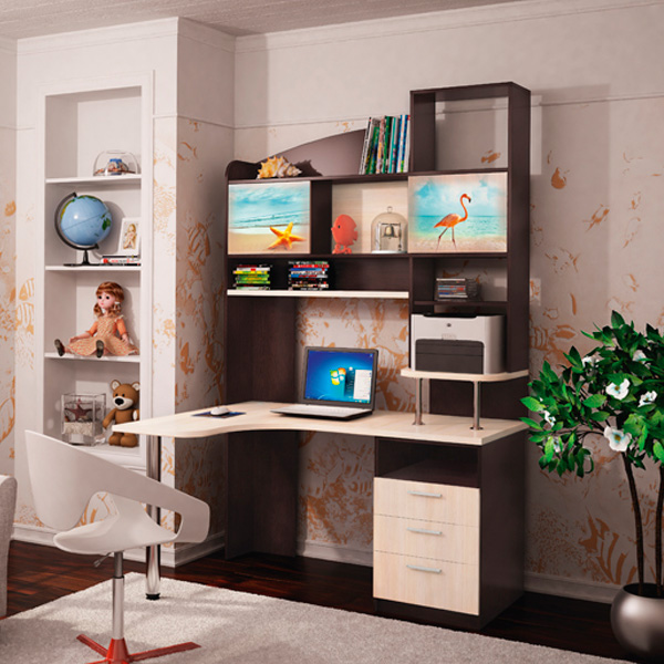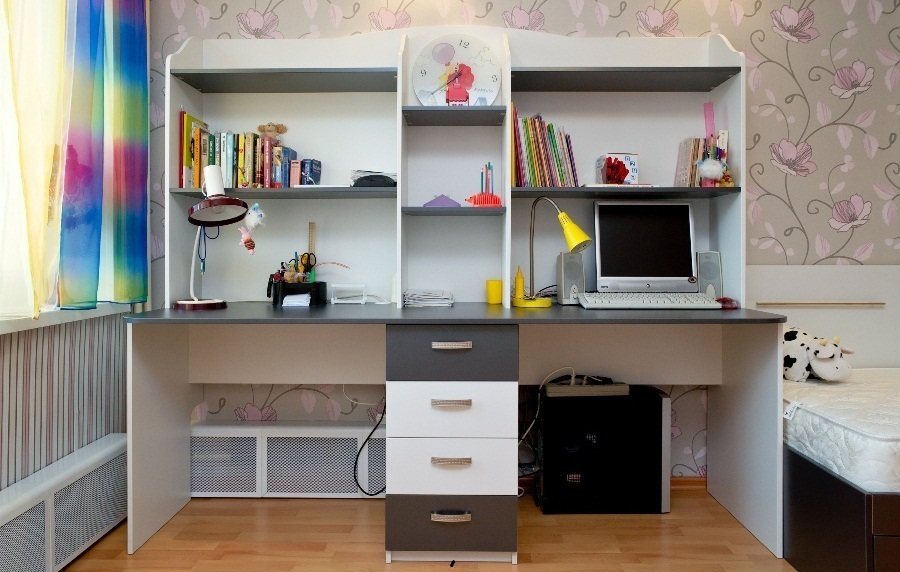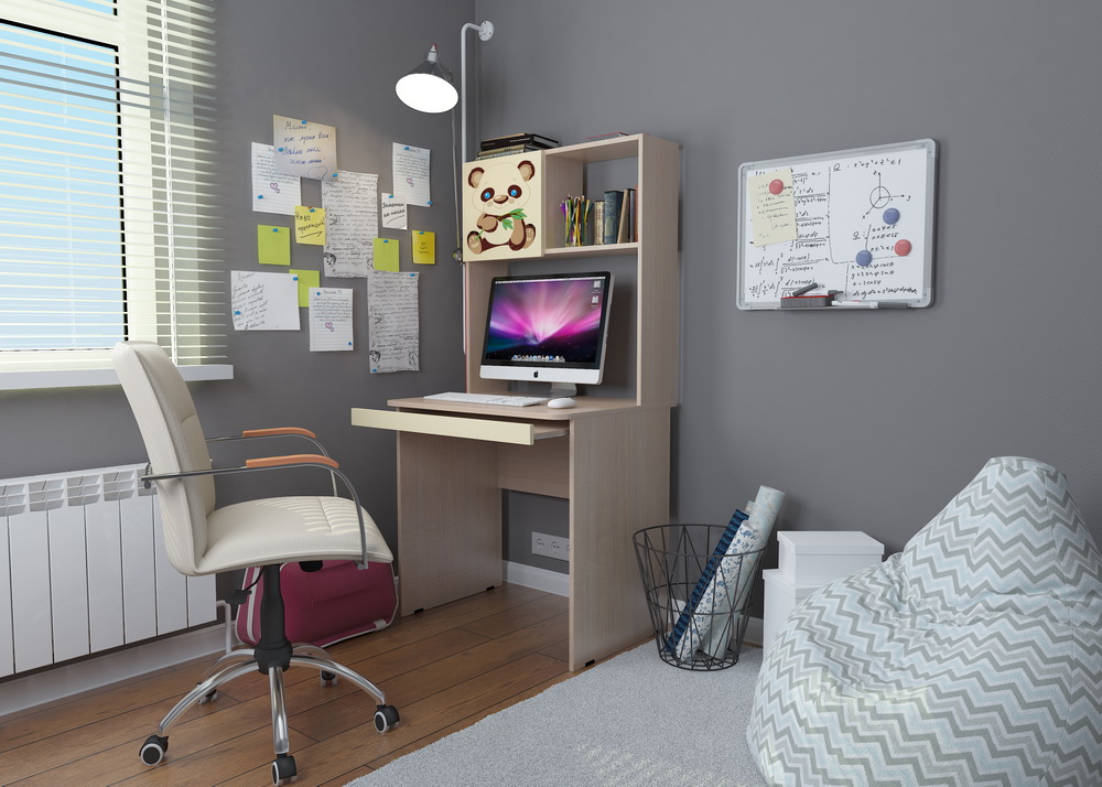 The student desk must include a written area. In general, experts recommend separating the written and computer workspace. Children of school age are very easily distracted from their lessons, and when such a “neighbor” is near, switching attention is simply inevitable. To prevent this, you need correctly plan a room and use add-ons to divide zones.