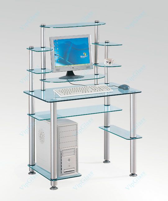- Glass Tables are beginning to gain popularity. Fully glass worktops and superstructures gracefully hold thin metal struts. This table literally dissolves in the interior. You can choose any color of glass. Very popular darkened, frosted, completely transparent, white, glass, material of the color of bronze. The variety of forms of glass tables is shocking: rectangular, angular, with oval edges and even arbitrary shapes.