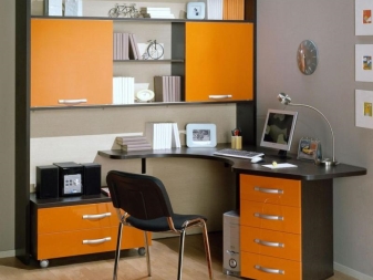 Computer tables with thumbs differ according to several criteria. Let's start with the most basic - configuration. So, the cabinets for such furniture can be: