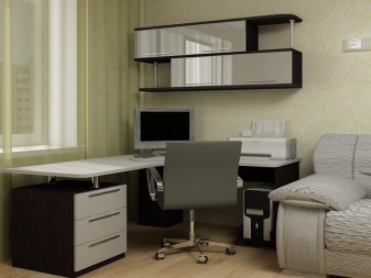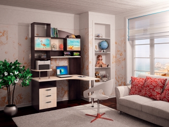 For spacious rooms, you can buy a large tabletop with several side tables, and for a more modest space, a small computer table is suitable.