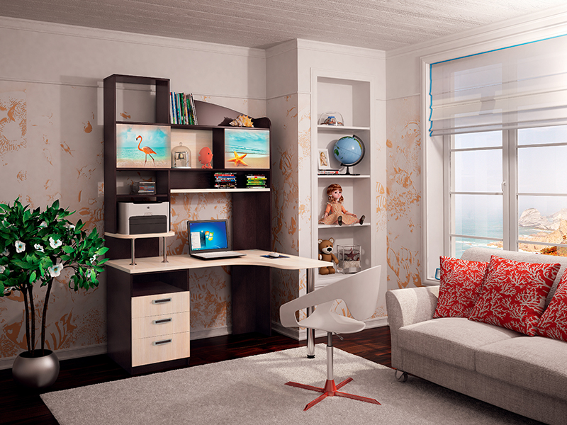 Also, computer desks vary in their design. A copy can be either single or with two bedside tables and even go along with the TV. In addition, structures are classified according to their dimensions. Choosing the size of the model, you must be guided by the features of your work and the area of the room.