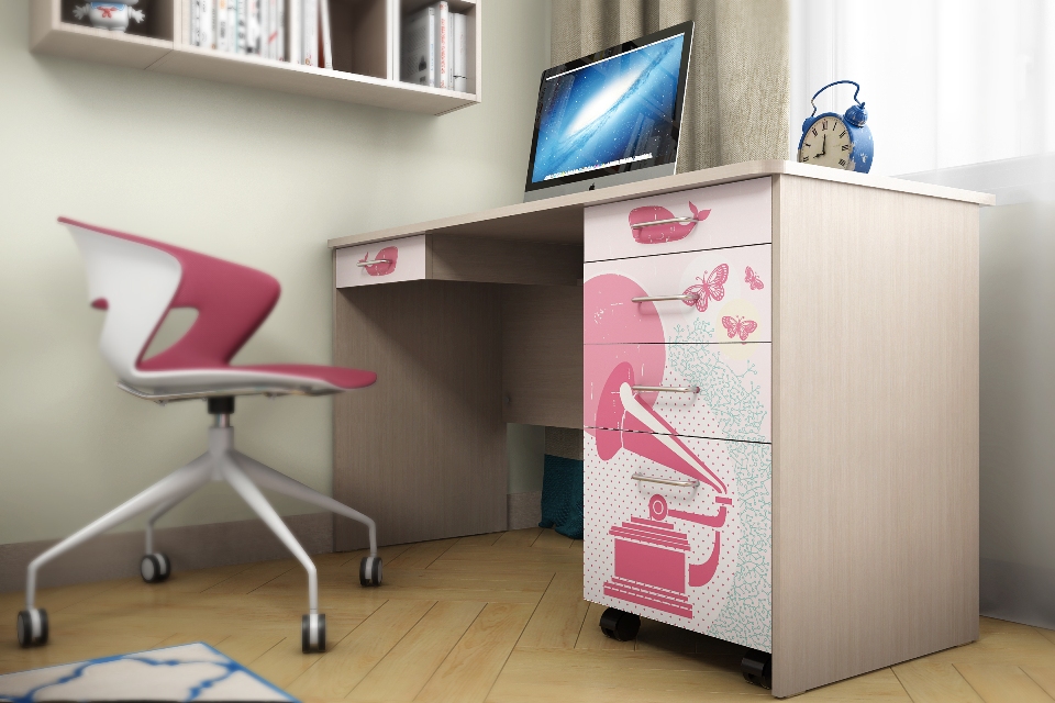- A table with a cabinet helps you not to clutter up the space in the room. Since most of the items at hand will be stored in drawers, you do not have to overload the free space in the room.