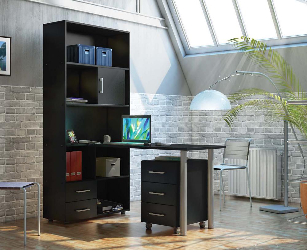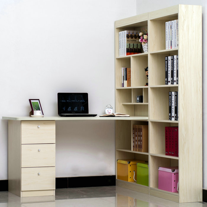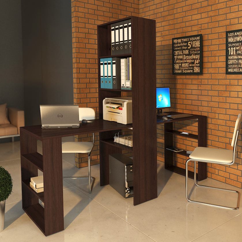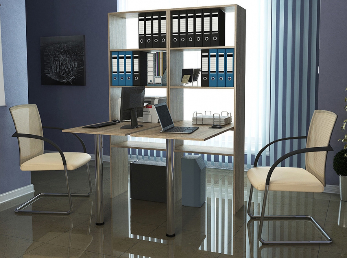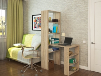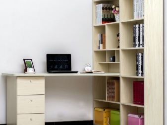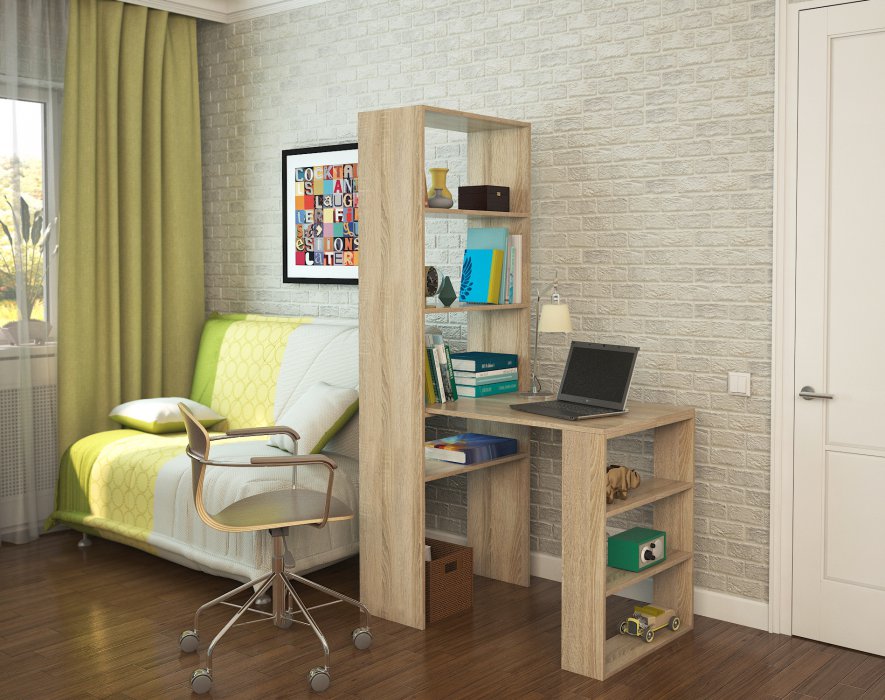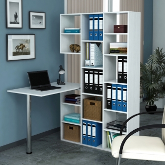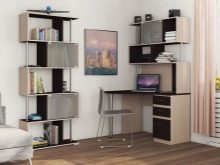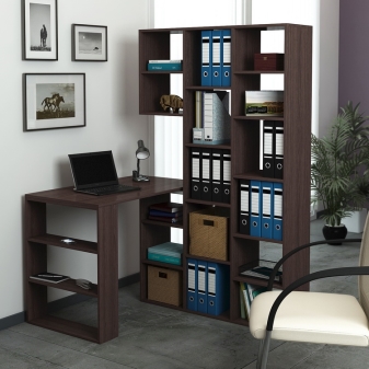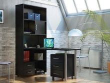 In most cases, such products are made of Chipboard - chipboard, which is covered with a layer of thin colored laminate. He is the very decor, thanks to which you can choose a table in the color of wenge, alder, beech or any other offered to your attention. The configuration and content of the model you choose should take into account your needs, as well as the number of documents and equipment that you plan to place on your table with a rack.