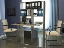 It is quite simple to buy a chipboard table, but it is necessary to decide on what office equipment will be located on it. Quite often, complete with many models are offered special add-ons for scanners, phones and other equipment. For papers, convenient drawers and spacious compartments are used, which are hidden behind deaf doors.
