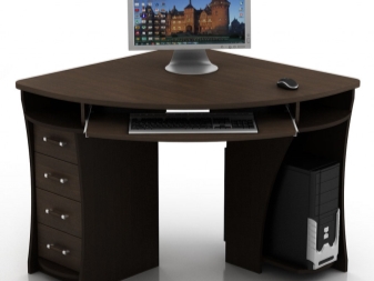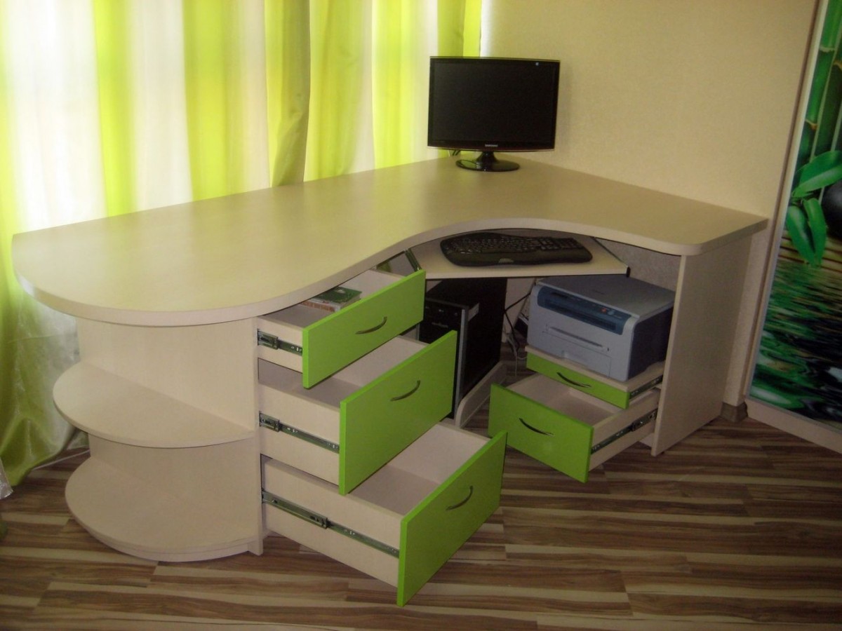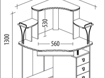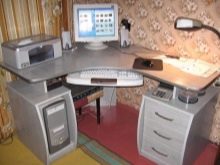 Diagonal tables the most compact, to install them you need only a small square in the corner of the room, but the functionality of such models is low, they have fewer boxes; Table extensions cannot be made large so as not to block the light from the window. It is necessary to think especially about the stand for the system unit, otherwise the legs simply have nowhere to put, which means that rapid fatigue because of the uncomfortable posture is provided. Diagonal-perpendicular models take up more space, but this is more than justified by their functionality.