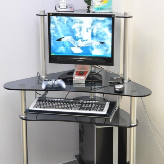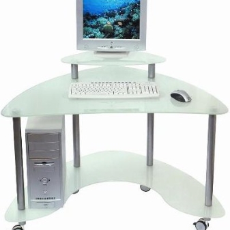 Most often, computer tables are made of chipboard, MDF, wood, glass and even metal. The first two options conquer its affordable price. The appearance is not inferior to wood products, but if the edge is glued carelessly, the table will quickly lose its appeal.