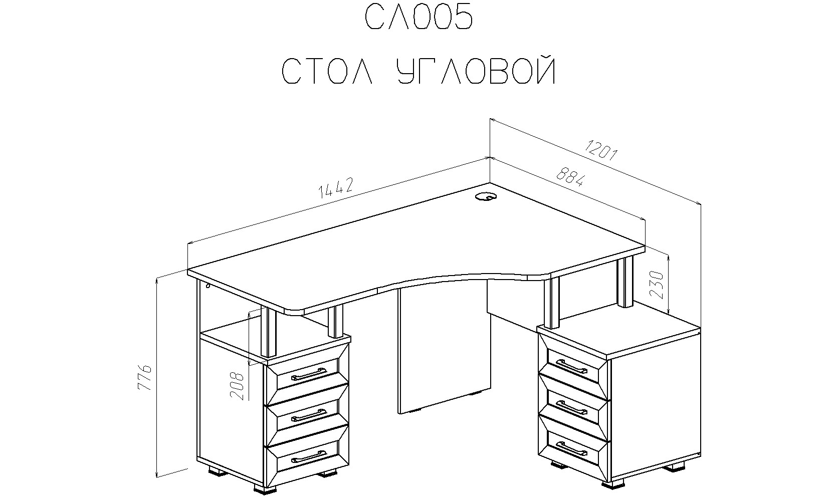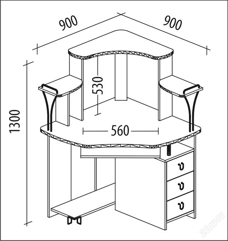 In the more spacious diagonal-perpendicular versions of the corner tables, one of the side table tops can be 130-140 cm long, and the second is collected from pedestals, drawers, various superstructures, etc.