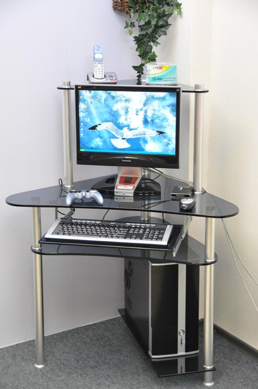 Corner computer desk is able to provide the correct distance from the eyes to the computer screen. Sitting inside a triangle formed by a table, a person looks at the monitor from a distance of at least half a meter.