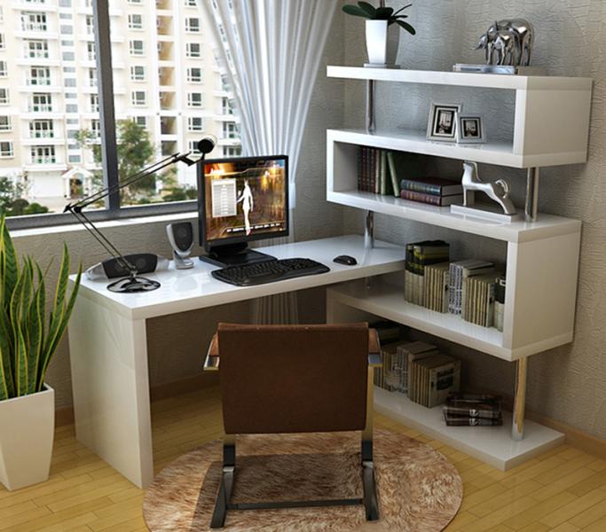 On the corner table with built-in shelves You can arrange the computer with all the gadgets and accessories and all the items that you used to keep close at hand. There are many compact models with bottom and side shelves.