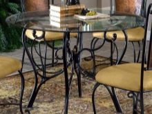 - Glass fits better into the designs of modern styles. Glass forged tables of any shape will be a highlight in the interior of a particular room. Gaining popularity products with accessories in the style of "bamboo". Every detail of the forged legs can be seen through the transparent cover of the table. The design of stained glass can revive the design.