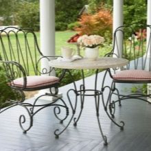 Do not forget about the additional elements that emphasize the image created with the help of wrought-iron furniture: