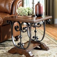 A small forged table can perform various functions. In the living room on his basement can be put newspapers and magazines. In the kitchen it can be a coffee or tea table. In the hallway under the mirror is often installed a small console. In the bedroom near the bed is often a dressing table.