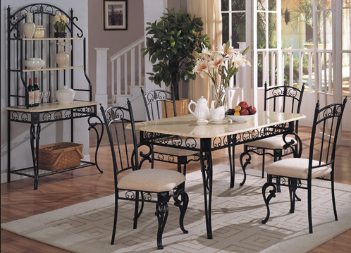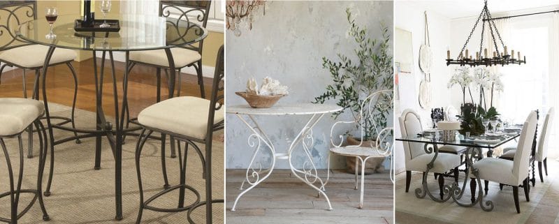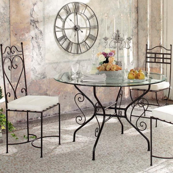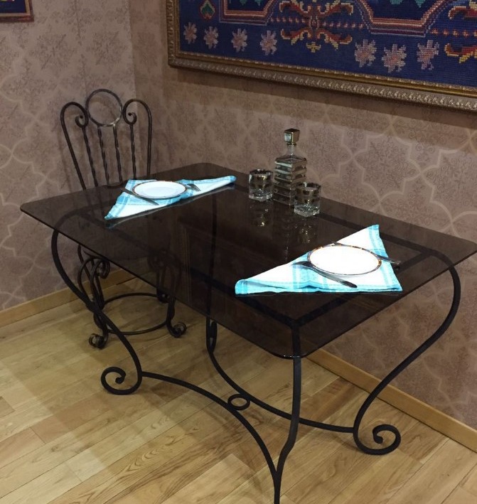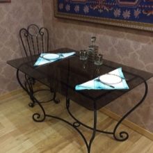 - Versatility. Forged table will fit into any modern interior, ranging from classic style to modernist design. Such a thing is also universal in terms of placement: a wrought-iron table can become a dining room in the kitchen, a dressing table in the bedroom, or a coffee table in the living room. You can also put it in the gazebo of a private house or cottage.