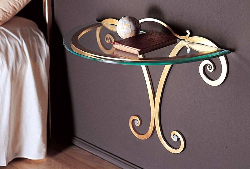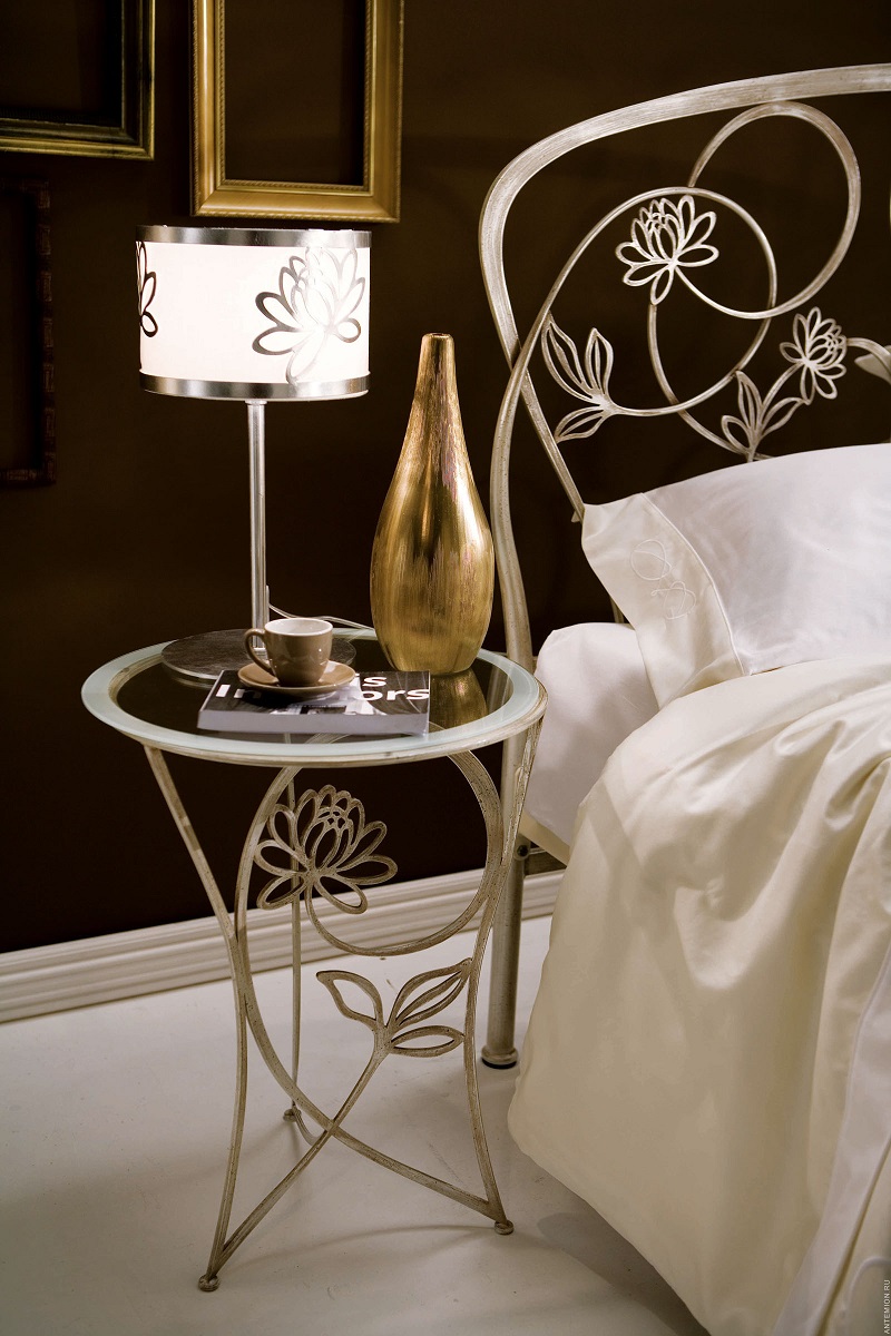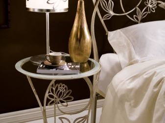 In the bedroom, the forged table can serve as a bedside table. On it you can arrange a book, night light, mobile phone. The table should be small, preferably square or round.