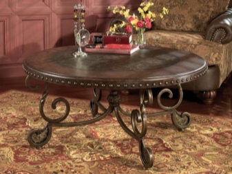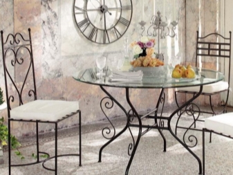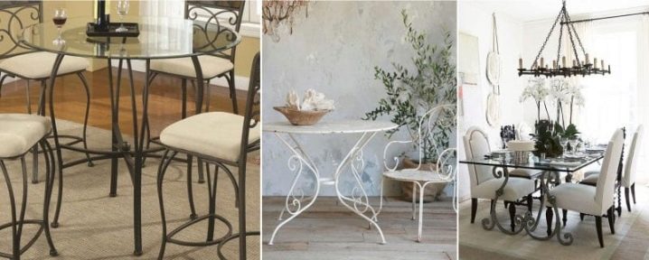 Depending on the set function and style of the room, the model of the table with forging is selected. Since there are many types, you can pick up the product absolutely in any room. It looks very good glass on a metal frame, especially if the base is full of patterns, curls, decorating elements. All of them will be visible through a transparent surface.