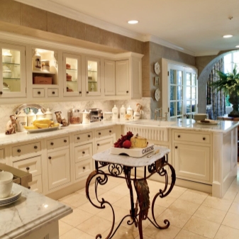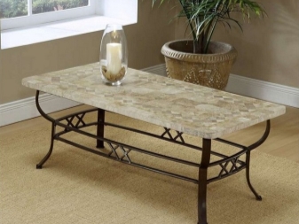 Wrought wood with a wooden tabletop will also be well located on the terrace or in the gazebo of a private house or cottage. For the street is also suitable metal countertop.The marble slab on a wrought-iron frame will perfectly complement the interior of a spacious dining room and will look expensive and solid.