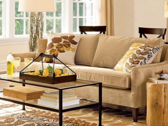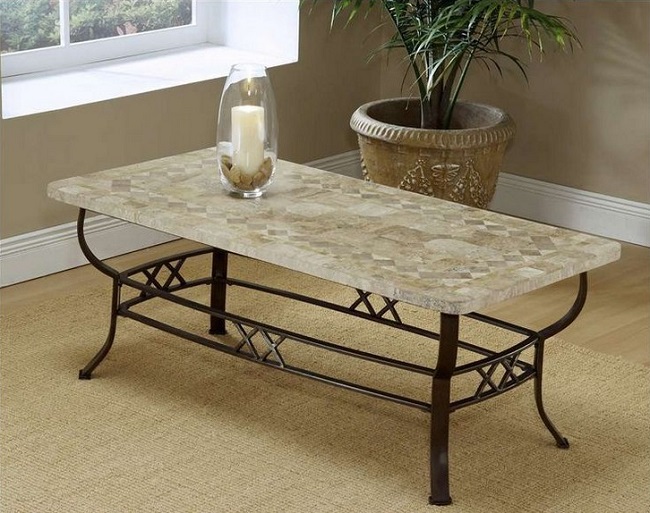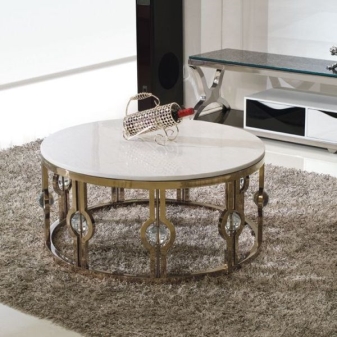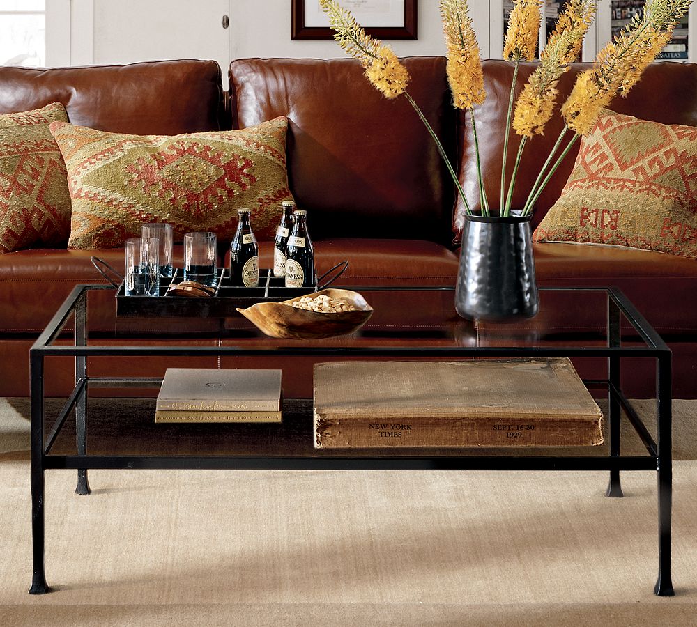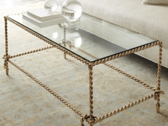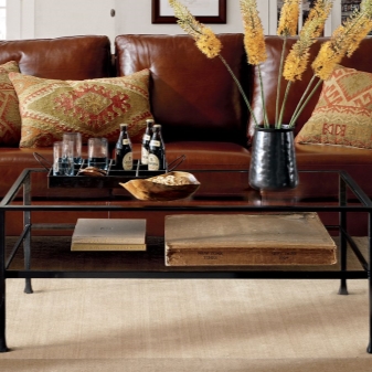 A coffee table with a glass top will be a useful and decorative element of the living room. To complete the image, you can put a wrought iron accessory for decoration on it.