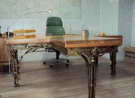 Products with a wooden table top can have various uses. In the office you can put a written forged table. This will give the room some aristocracy.