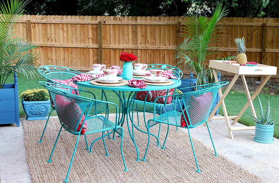 - The metal tabletop can be painted in any color, of course, taking into account the colors of the neighboring furniture.