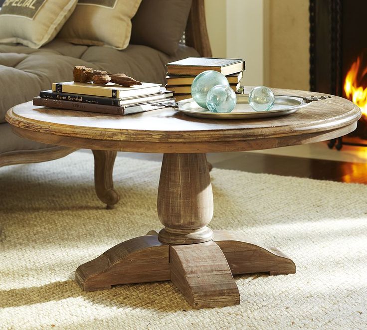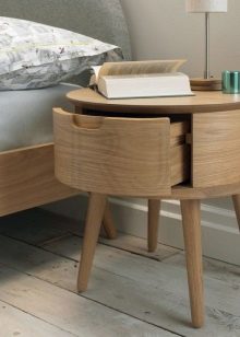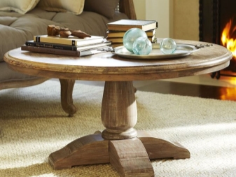 In addition, this attribute can harmoniously fit into the style of the room where it is located. In the living room and the hall it will be appropriate to look like a rounded coffee table made of wood on one leg. If the products in the shape of a rectangle can look too cumbersome, and will not work for small apartments, then the rounded tables considered more compact and look in such conditions gracefully.