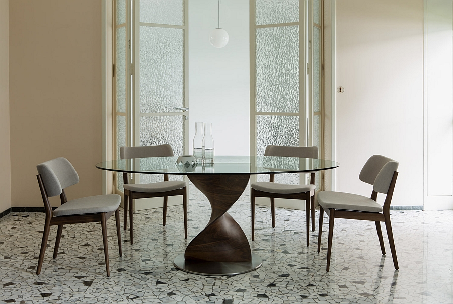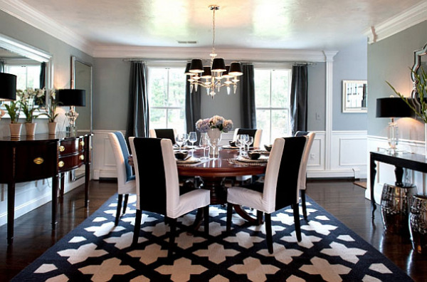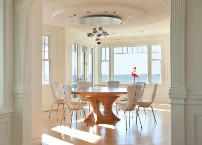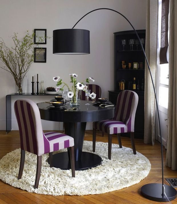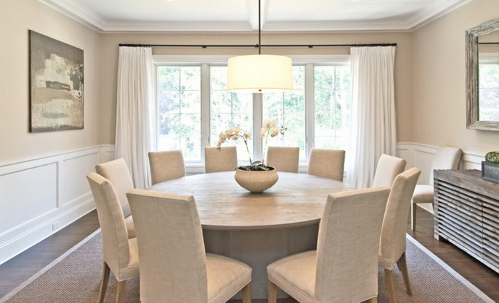 If there is not enough space, then a round table can be placed at the wall. Then it will be possible to move it to a new place and just as easily return it back. This is very original, and therefore will attract the attention of your guests, as the rounded table creates the effect of solidity.