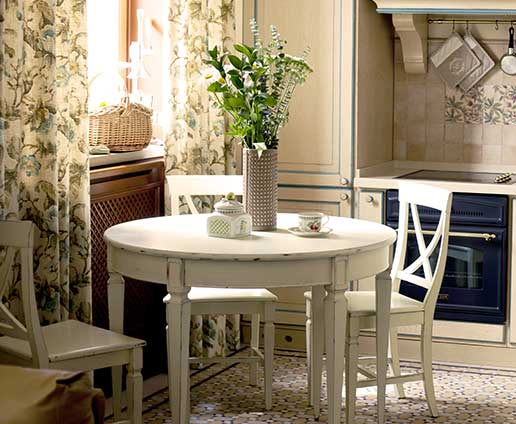 For a light interior, an oak tree will suit perfectly, if you want to get a reddish tone - cherry, from dark colors a walnut looks very nobly. If you want to buy a white round table made of wood, then the ideal option would be to purchase such a design to order from bleached oak. Furniture of this color will not only look original but will last for a long time.