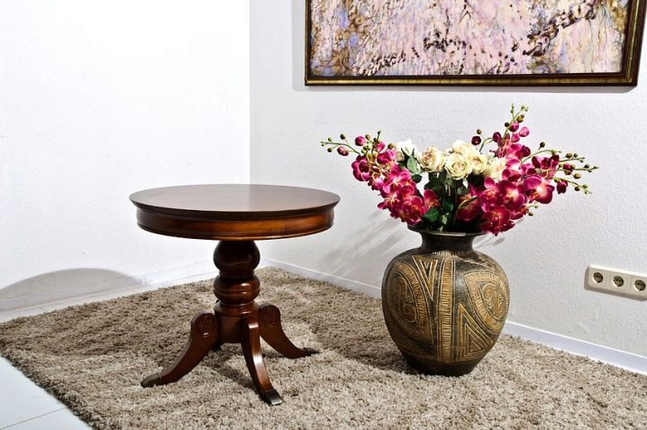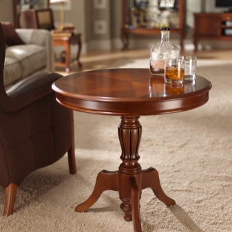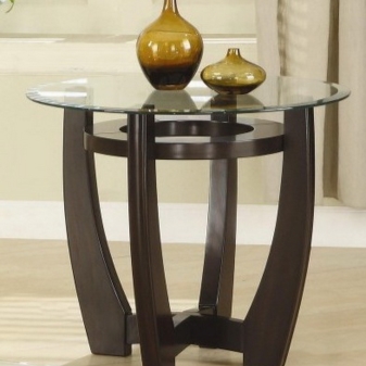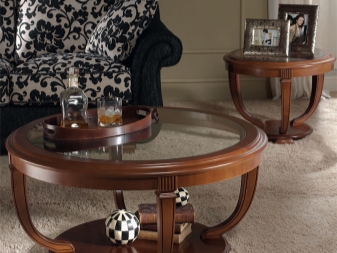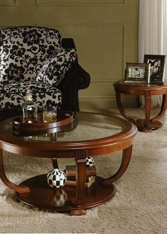 Also, a round table can have three legs. This item looks quite interesting. The classic version of the dining table on four supports can go into a smaller copy of the coffee table. This is a fairly convenient design that can be combined with any form of tabletop.