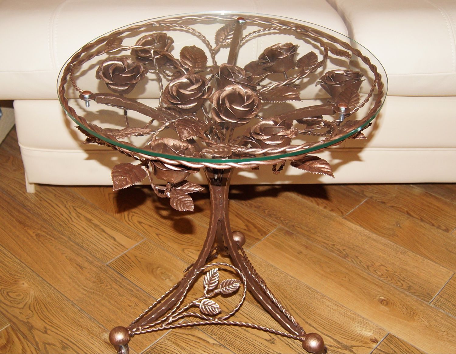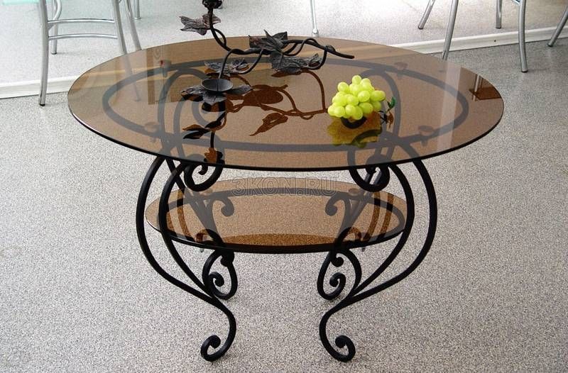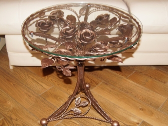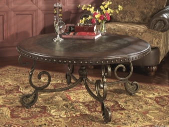 - Metal. Forged coffee tables, despite the heaviness of the metal, have a rather light and airy look. They are durable, do not be afraid of either moisture or temperature changes. This material is environmentally friendly, does not cause allergies, but many do not like it because of the coldness.