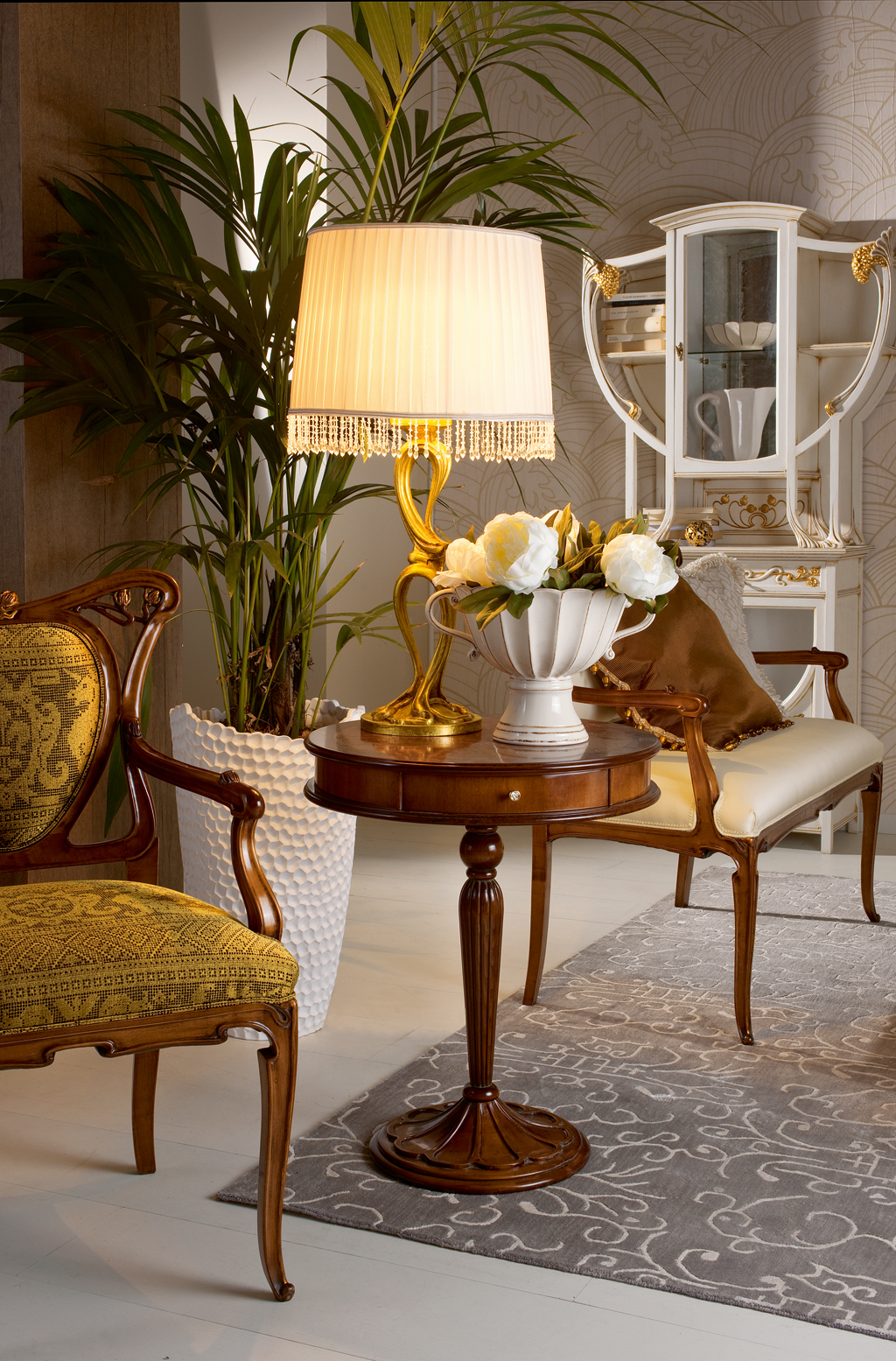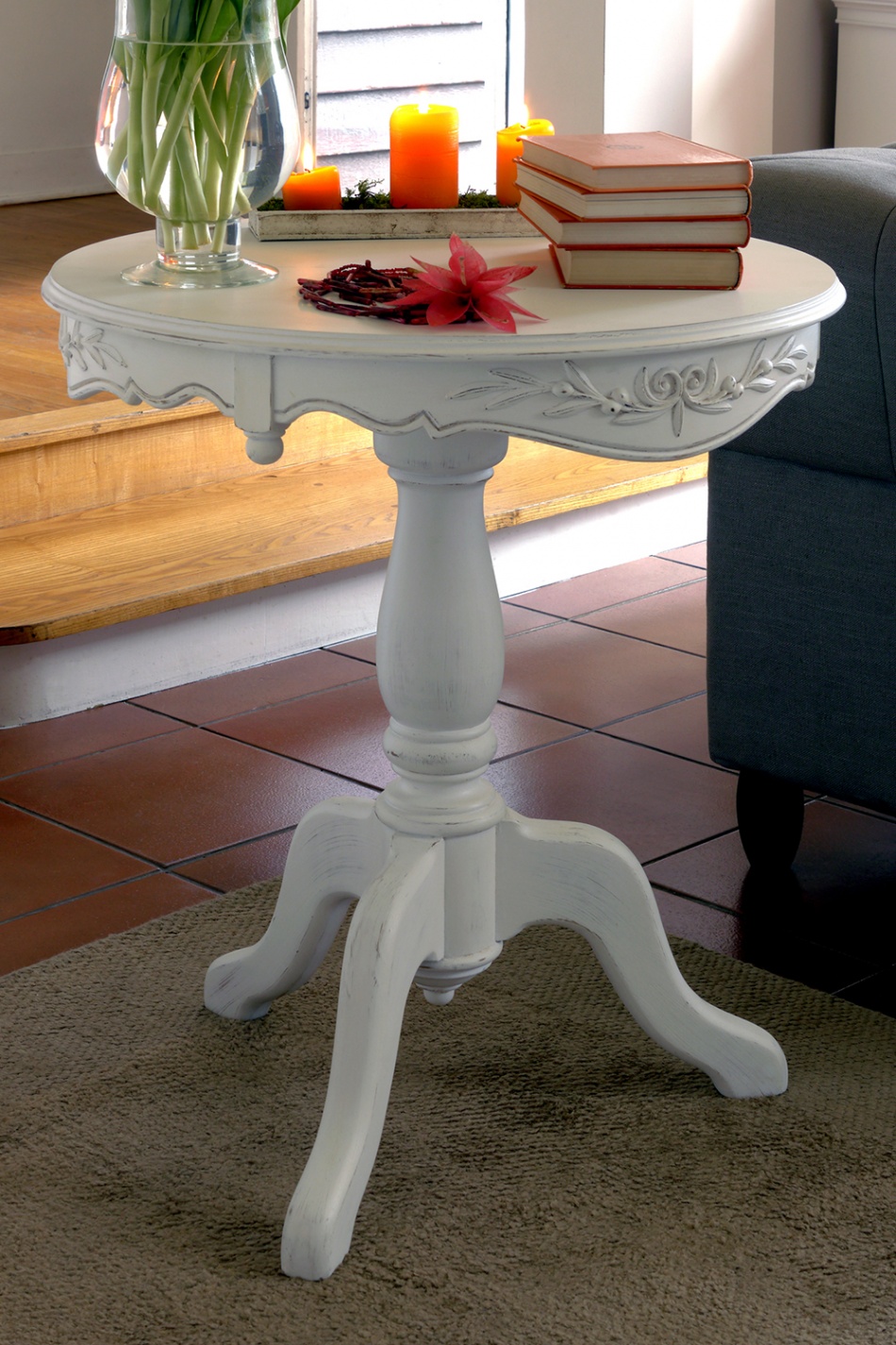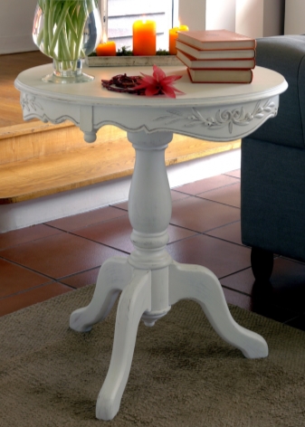 White, aged under a vintage table will be an excellent attribute in the living room, decorated in the style of Provence.