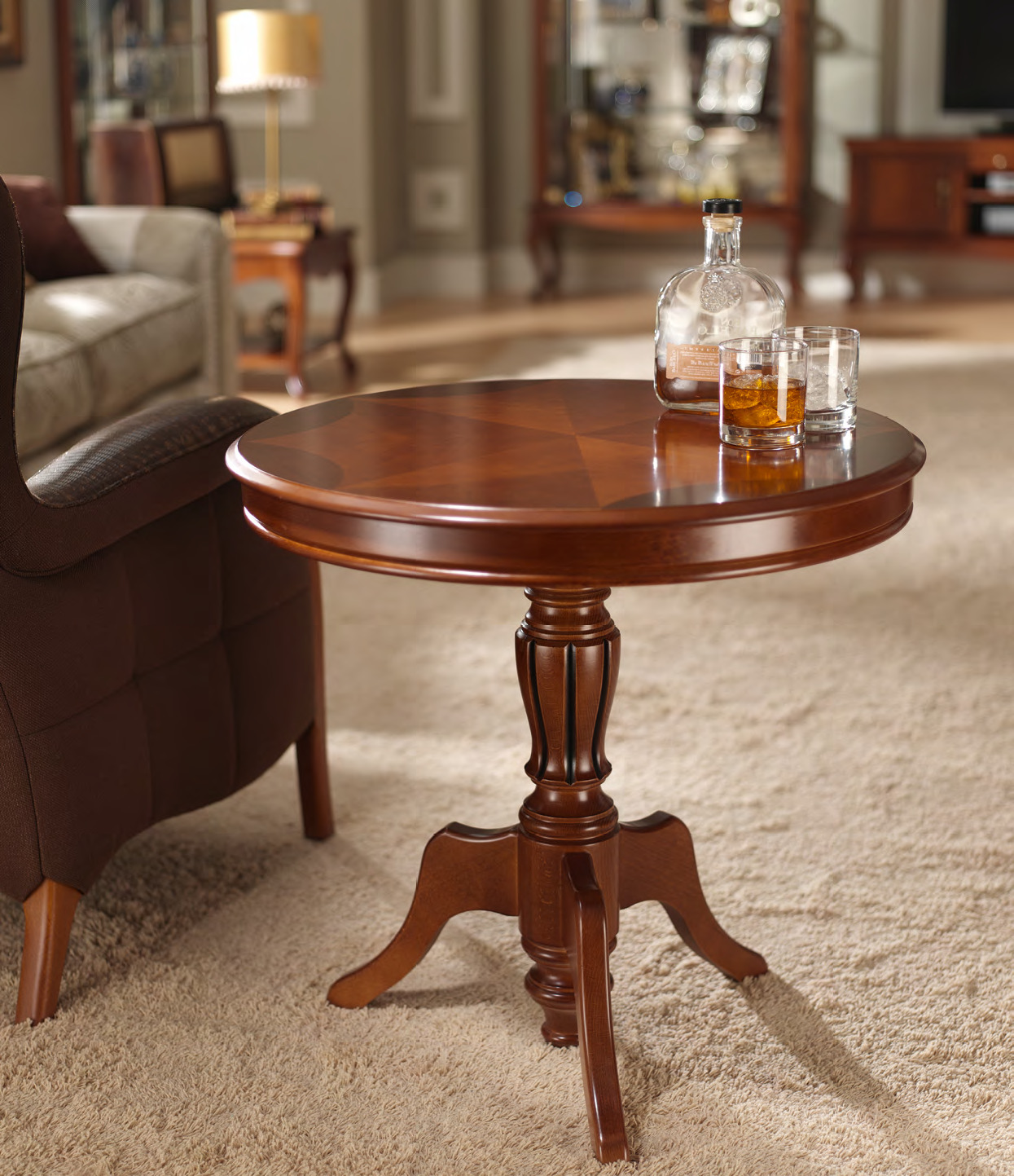 - Room interior style. It would be inappropriate to install a bulky wooden table with a carved foot, decorated with monograms, in a high-tech living room, or a glass attribute of an intricate shape in a stiff English cabinet.