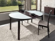 In the elongated rectangular space you should not place a semicircular product in the middle. This will make it more difficult to move around the room.It is better to choose a convenient place in advance, especially if it is located in the window area. The transforming table should not take up much space when folded; it is enough that it can accommodate up to four people. Ideal oval product is suitable for placement in a large square room. It can emphasize and decorate it with bright colors.