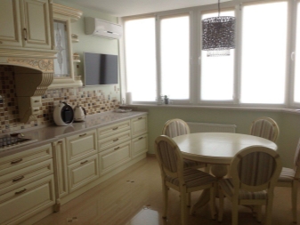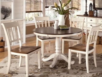 The design of the product must match the design of the rest of the furniture, which is located in the kitchen-living room. It is important to rely on the general style of the room so that the dining place does not stand out from the rest of the zones.