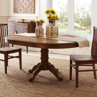 When choosing a sliding oval design, it is important to take into account both the appearance and the number of legs. For example, for classics or Provence it is good to pick up a product with carved or curved legs. They can be made of rattan or metal - it all depends on the personal preferences of the owners.