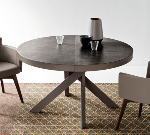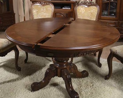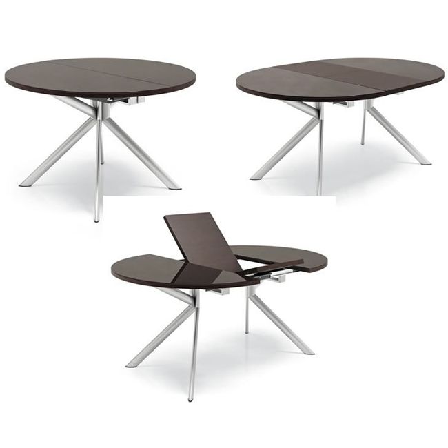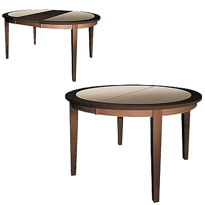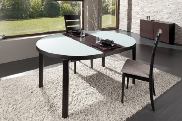 The design of the sliding round table consists of a table top, which is divided into two equal parts in the central zone. Under the tabletop there is an additional compartment in which are the parts necessary to increase the size of the table. If desired, you can push the two parts of the product and place additional parts into the resulting space. These simple movements will significantly increase the area of the dining area.