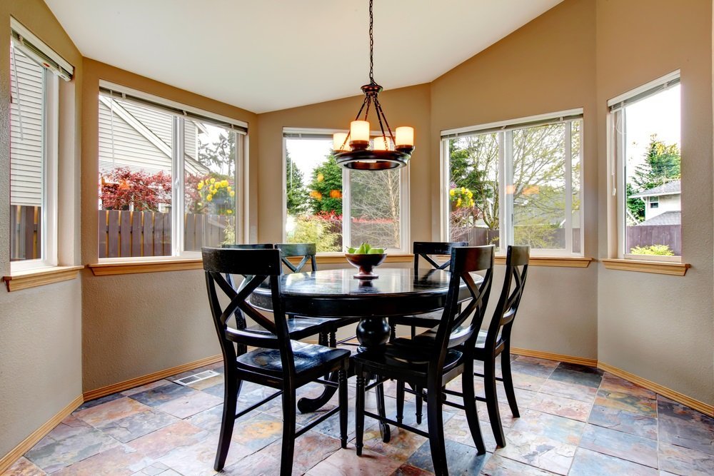 Finishing under a natural stone can add elegance to the space if there is a stone table in it. At the same time, it is not at all necessary to install a product from a real stone, it is enough to imitate naturalness.