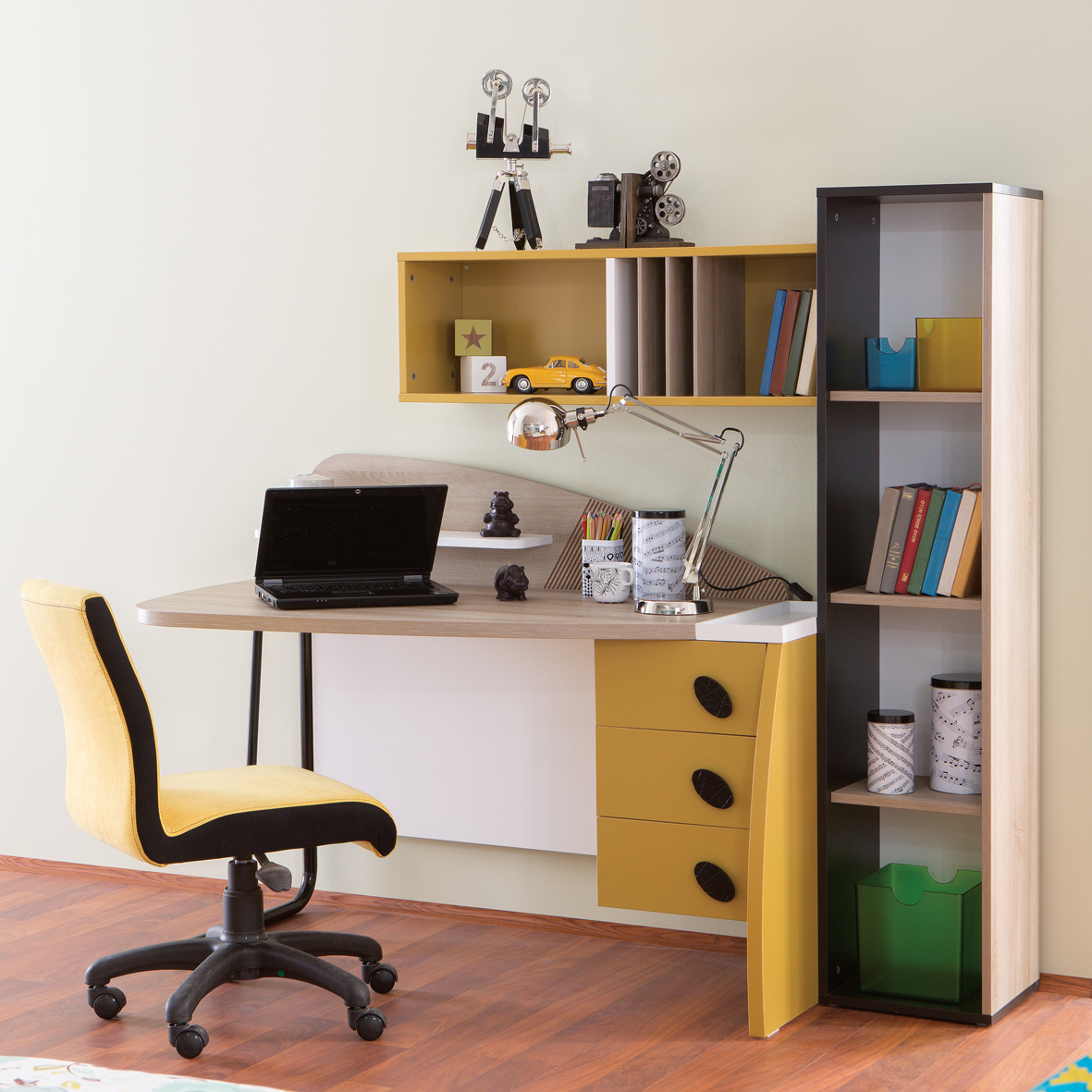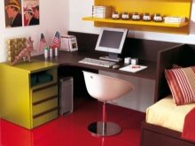 The place for a high school student should be large and wide, while there should also be a maximum of free space under the table. If room space allows, then it is better to move all the boxes and shelves to the case and place it on the side. The more space under the table and the fewer tables there, the easier it is for the child to work, without getting stuck with textbooks in the corner. The length of the table tops about one and a half meters will allow you to work not only with textbooks and notebooks, but also put a nuotbook on the table.