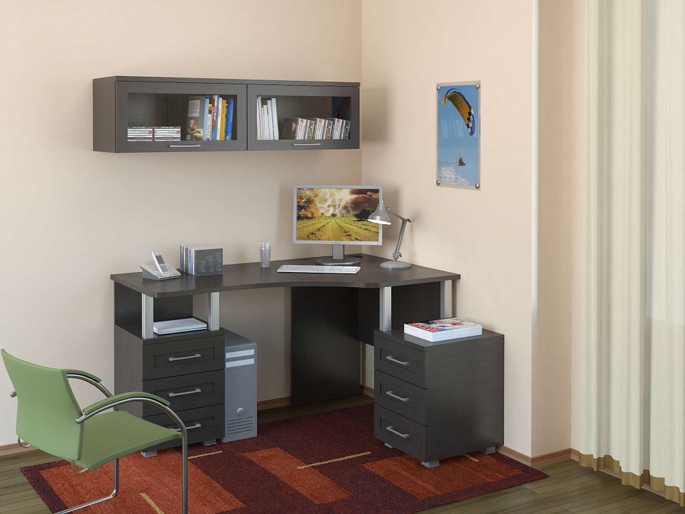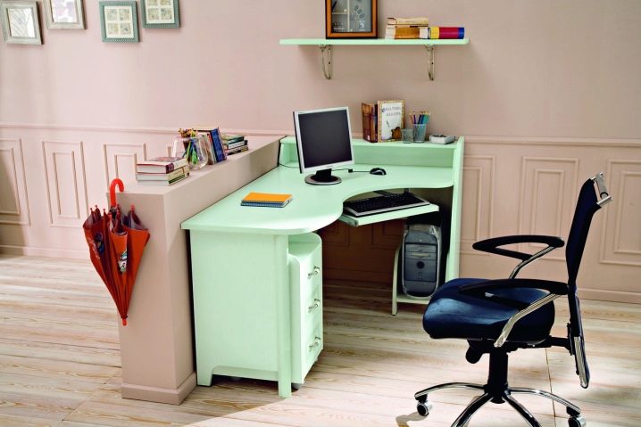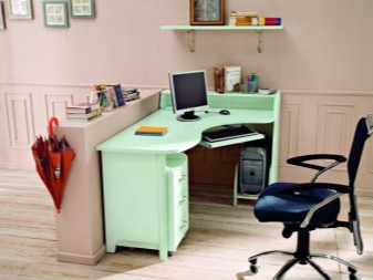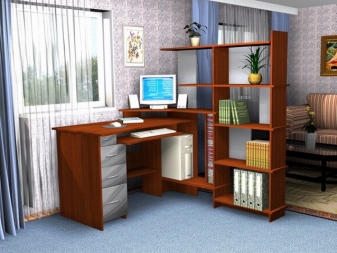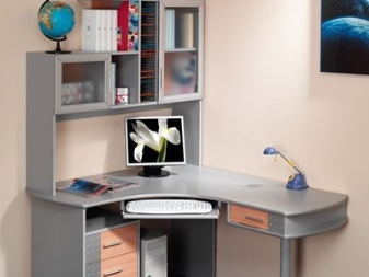 The negative aspects of the corner tables can be considered their monumentality - if the design of the corner table has built-in shelves, drawers and cabinets, then it can be assembled only on the side for which it was originally made.The disadvantages of such tables can be attributed, and their great weight - to move it alone is almost impossible.